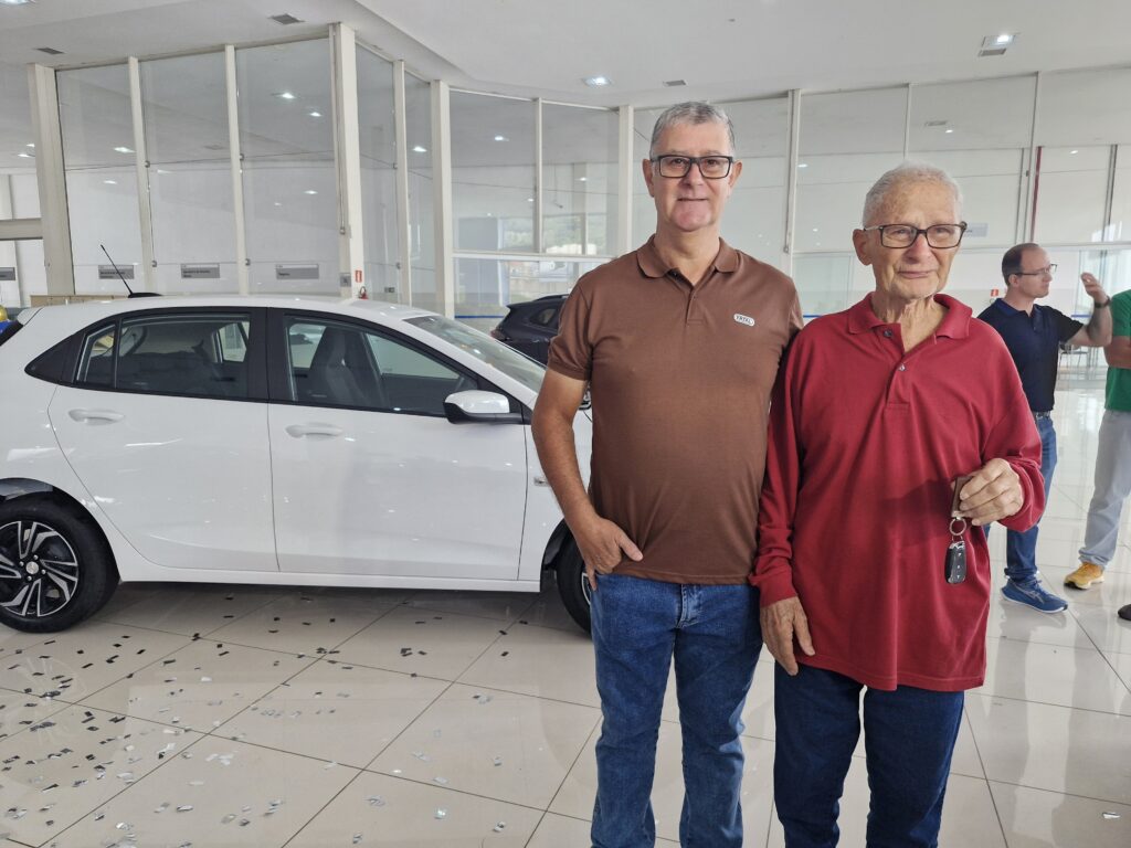 Poços de Caldas, MG – Depois de muita desconfiança, expectativa e receio de golpe, o policial aposentado César Aparecido Silva finalmente recebeu, nesta terça-feira, 3, o prêmio que mudou o início de seu ano: um carro zero quilômetro. Ele foi o grande vencedor da promoção de Natal promovida pela Associação Comercial, Industrial e Agropecuária de Poços de Caldas (ACIA) e revelou que pretende vender o veículo para ajudar no tratamento de saúde de seu pai, Sebastião da Silva, de 83 anos.