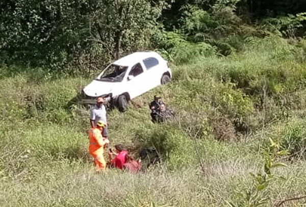Corpo de Bombeiros atende capotamento de veículo com duas vítimas em ribanceira na BR-146, em Poços de Caldas