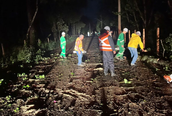 Chuva forte provoca queda de árvores, alagamentos e mobiliza equipes