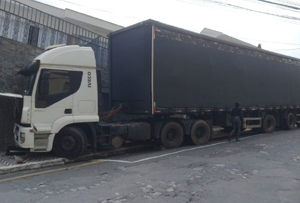 Carreta desgovernada atinge muro de escola na rua Paraná