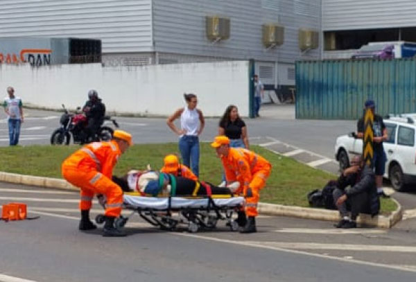 Pneu estoura e motociclista cai na Avenida Alcoa; passageira fica levemente ferida