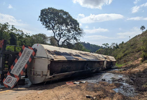 Carreta com 60 mil litros de óleo tomba na BR-267, em Campestre